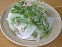 | 初回訪問時 (03年6月) 国道12号線を北上し、「江部乙」の看板が見えたら、すぐに店の看板が左手に出る。かなり小さいので見逃さないように。そこで左折。そこから、田園の中を2.5キロ走ると、また左手に小さな看板があるので、そこで左折すると、ログハウス風の建物が見える。 もともとが農園だけあって、周りは全て畑。のどかな風景が良い。 「ママズキッチン」の特徴は、自家栽培のとれたて野菜を使っているということ。そして、野菜のみならず、お米までも自家産だという。使われる野菜の種類は、時期によって変わる。 |
